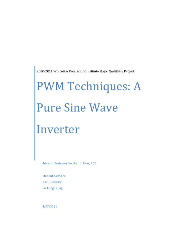 Pdf Pwm Techniques A Pure Sine Wave Inverter Jacon Savvidis Academia Edu