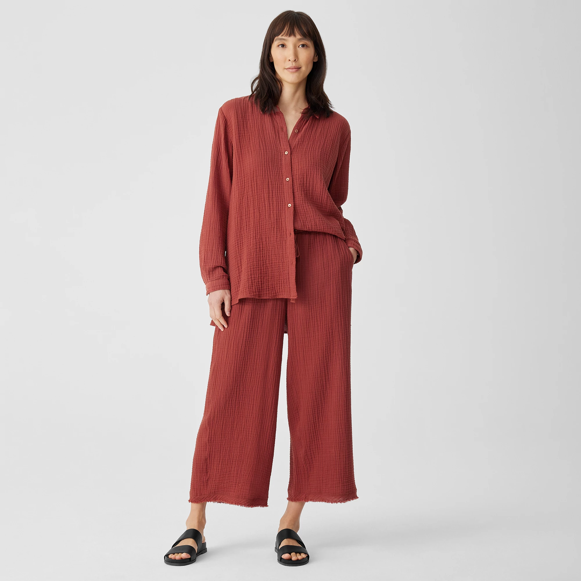 Organic Cotton Gauze Wide Leg Pant Eileen Fisher